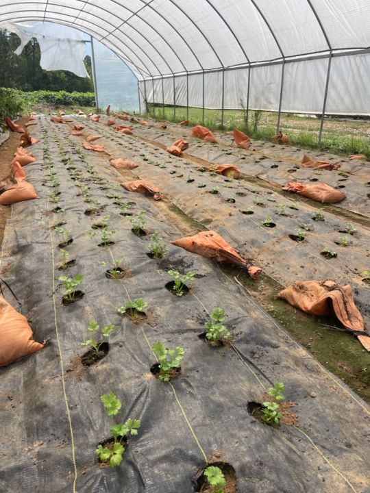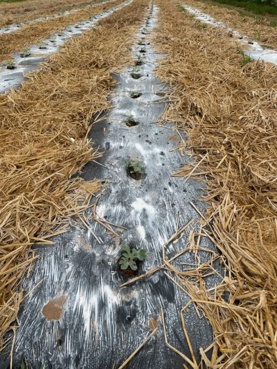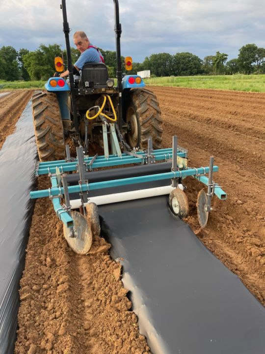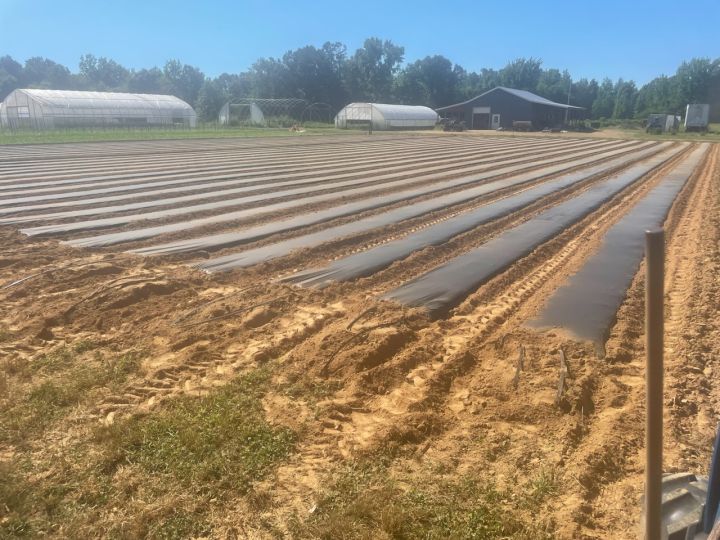 First nine beds for summer crops were shaped and cover on Saturday and filled with plants on Monday