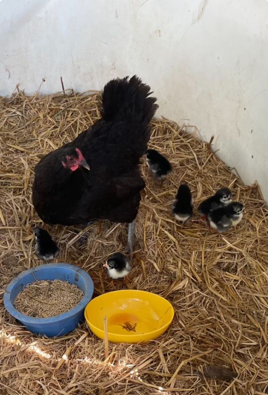 This hen snuck off and hatched seven little chicks. Josephine caught them all and moved them to a safe space