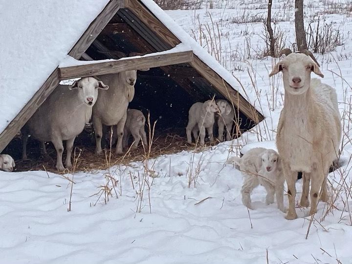 Mommas and their kids. Just a few days old the kids fared well in our cold snap