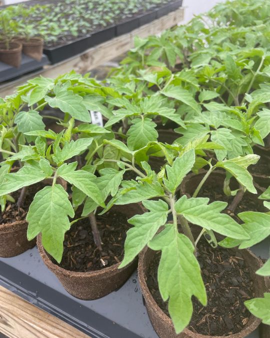 Just a few of our tomatoes potted up for our spring plant sale