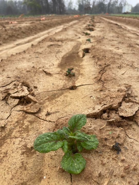 Potatoes are pushing up through the soil