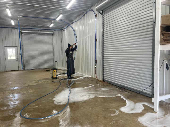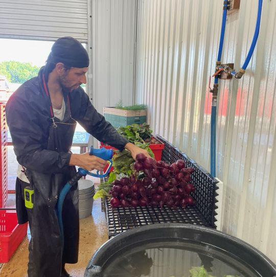 Robin spraying and cleaning carrots