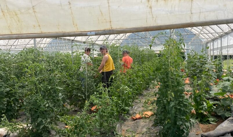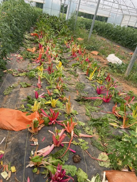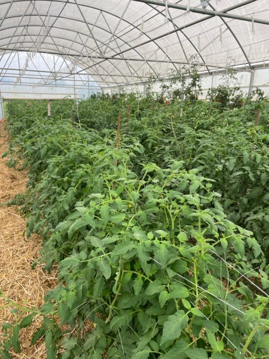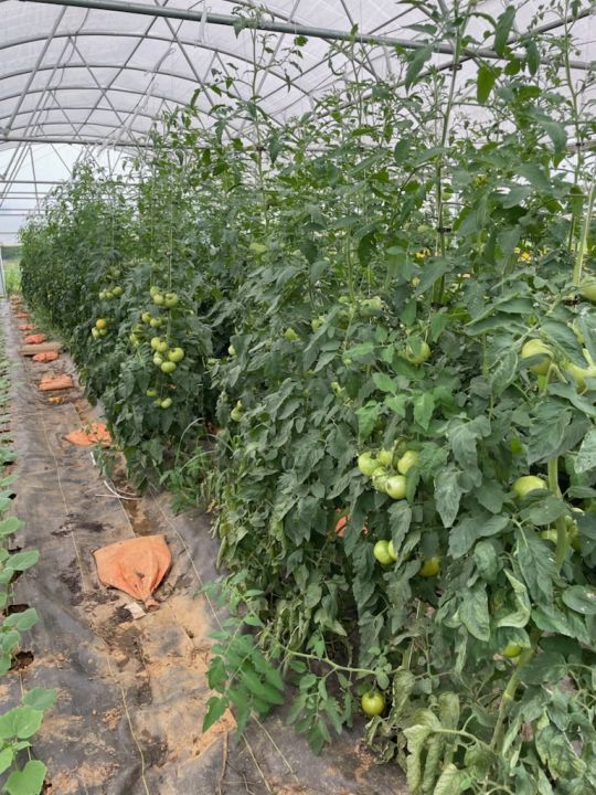 Lots of tomatoes still growing in the high tunnels