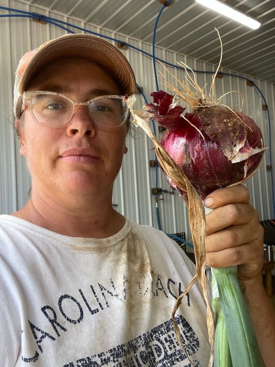 First time growing onions in the high tunnel. Some of them are just huge.
