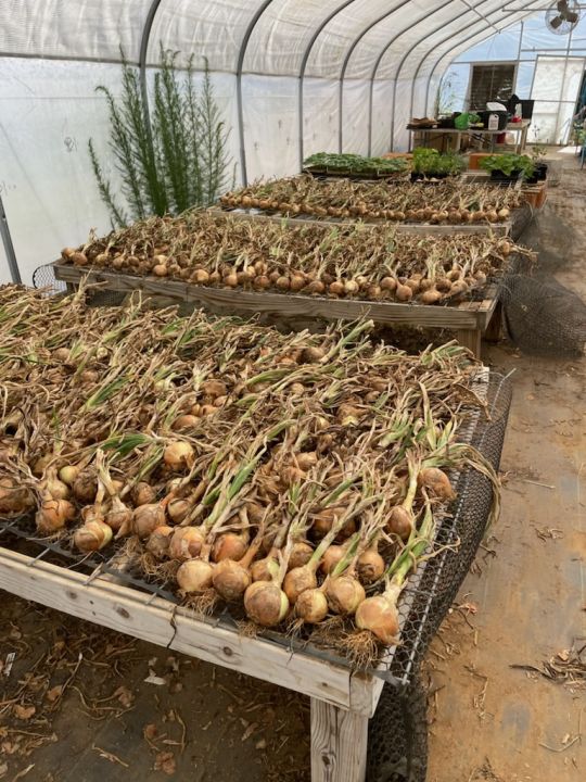 Just some of the onions curing in the greenhouse