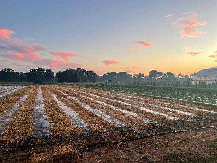 Early morning shot of the cover crop mix coming up