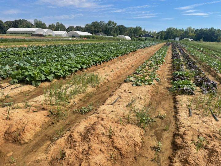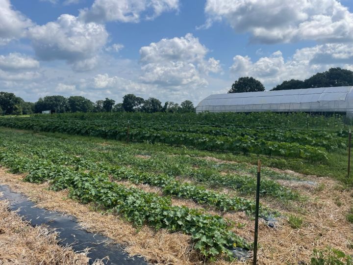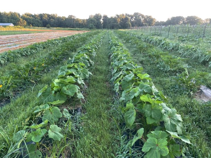 A picture of our late summer section coming to your CSA or farmers market melons, okra butternut squash and more