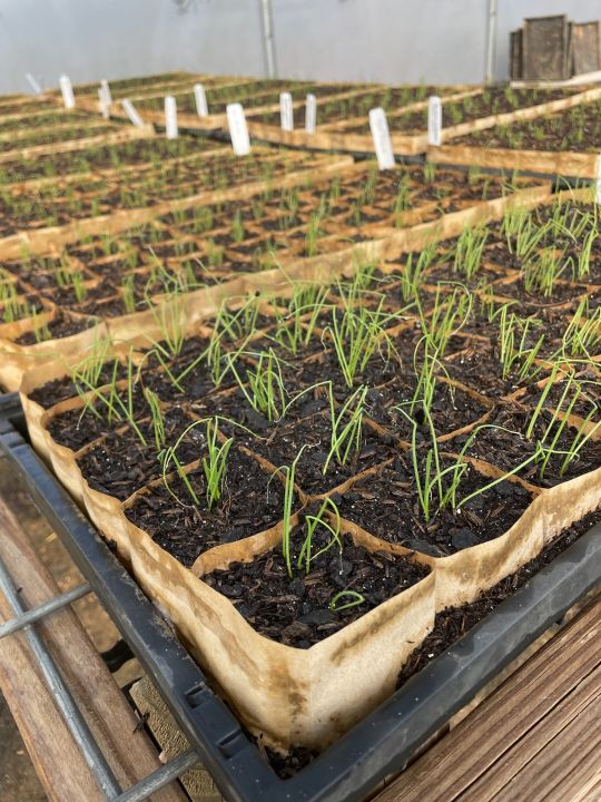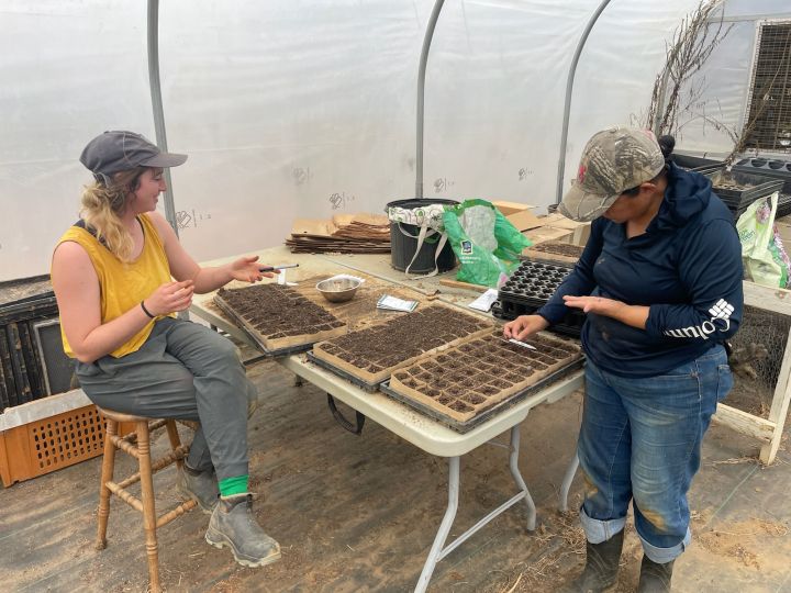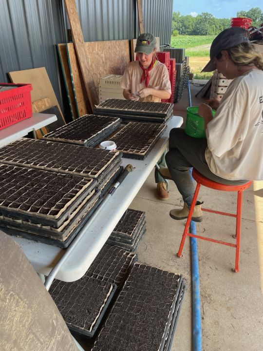 Meg (L) and Monica (R) seeding onions and leaks for 2025