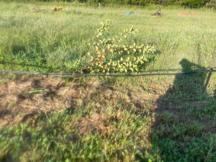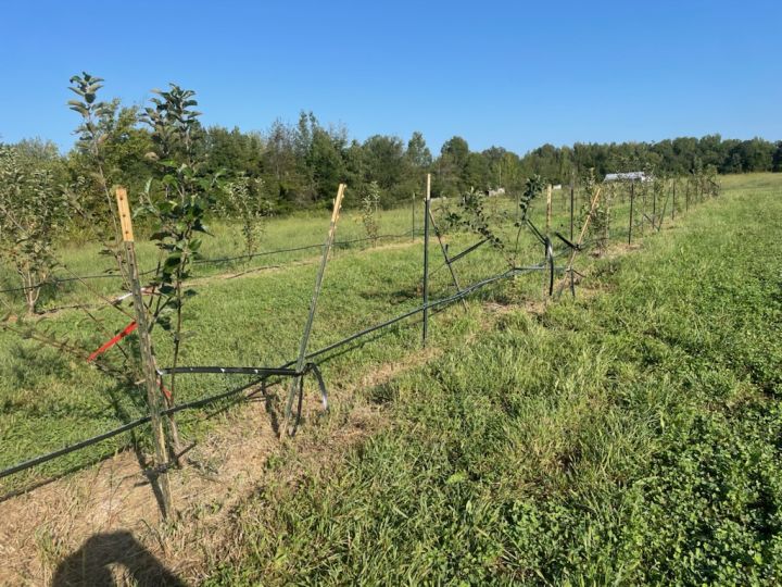 Here are a few apple trees we had to support after the rains and wind