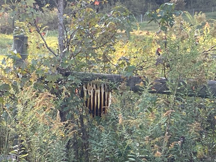 Another angle of the bee hive on the fence
