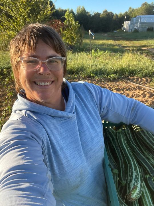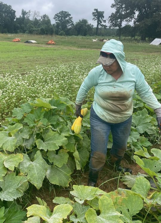 Monica picking some of the last squash of 2024