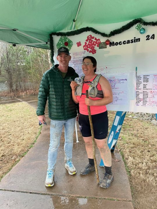 Josephine her 52 mile buckle after running 13 laps during the Moccasin 24