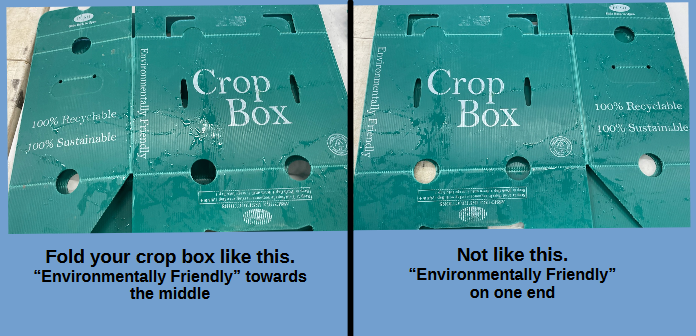 Please fold your box with the “Environmentally Friendly” label over towards the middle NOT on the end