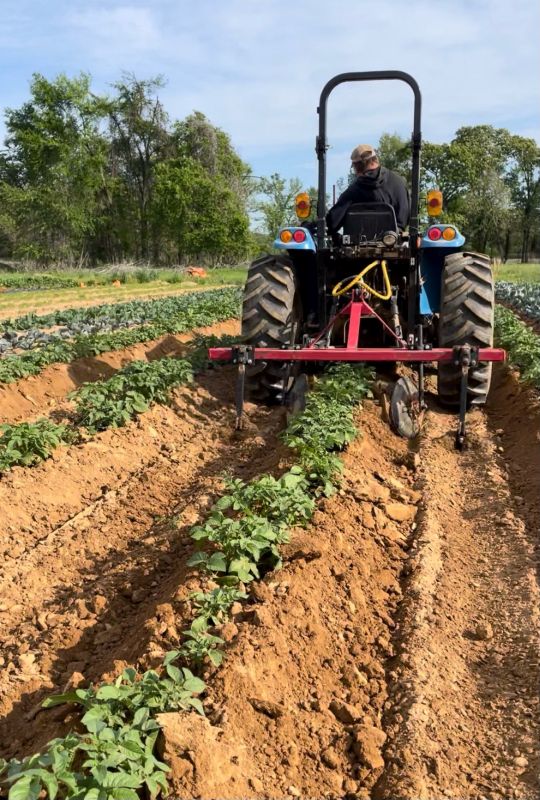 Randy driving the tractor hilling the potatoes