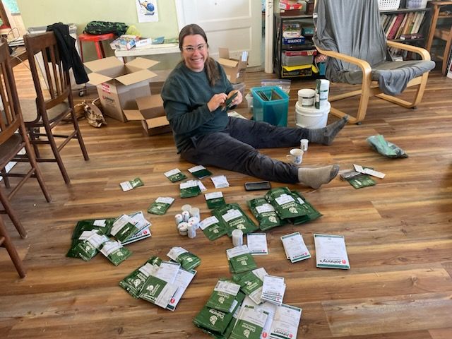 Josephine sorting and organizing seeds for 2024
