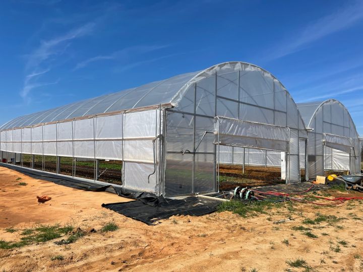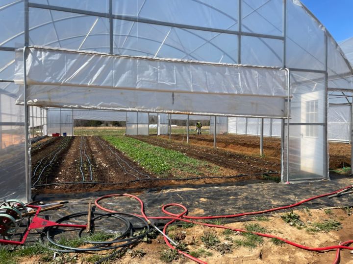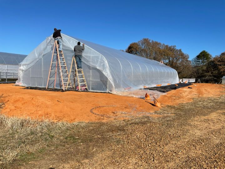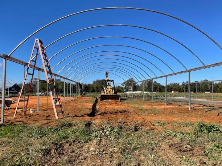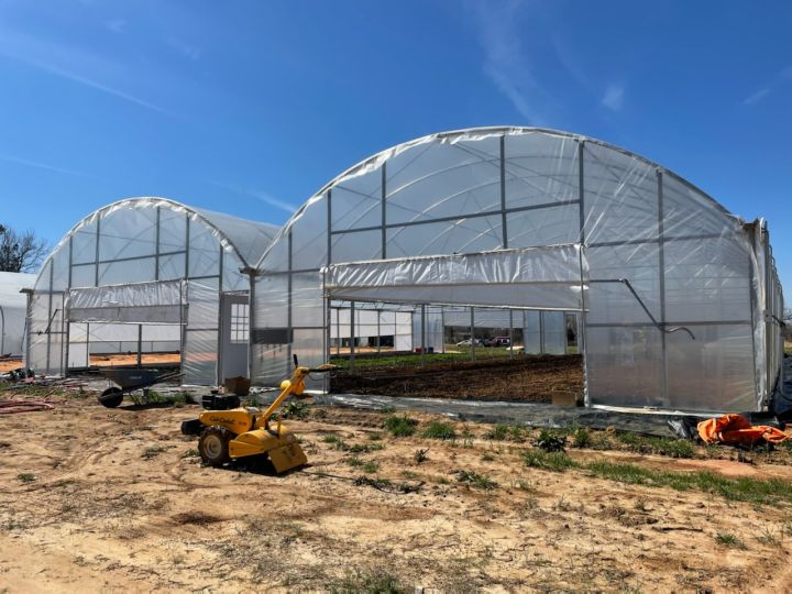 In 2021 we decided we needed to invest in a proper greenhouse and more high tunnel space. We decided to go with an Atlas Greenhouse manufacturer for our greenhouse and gutter connect double bay high tunnel more on them later.