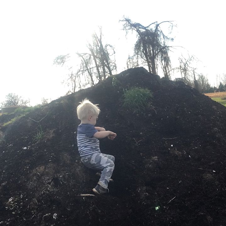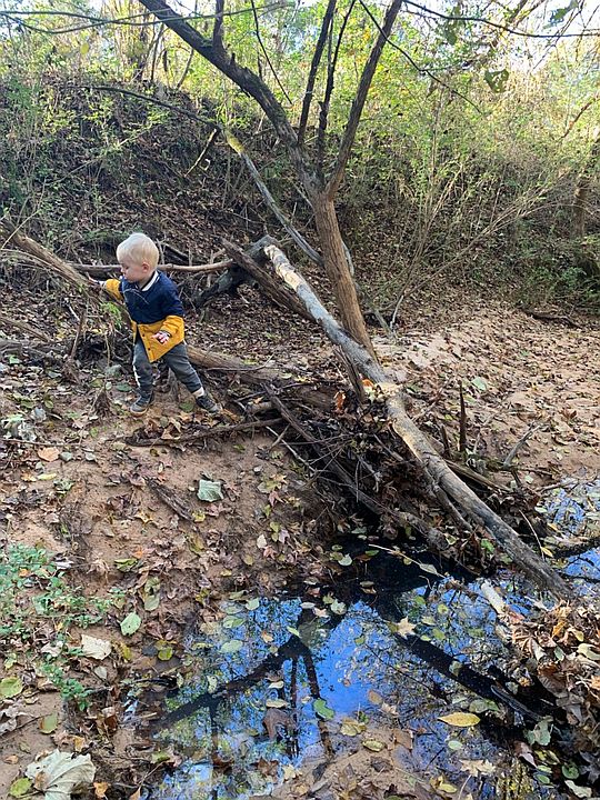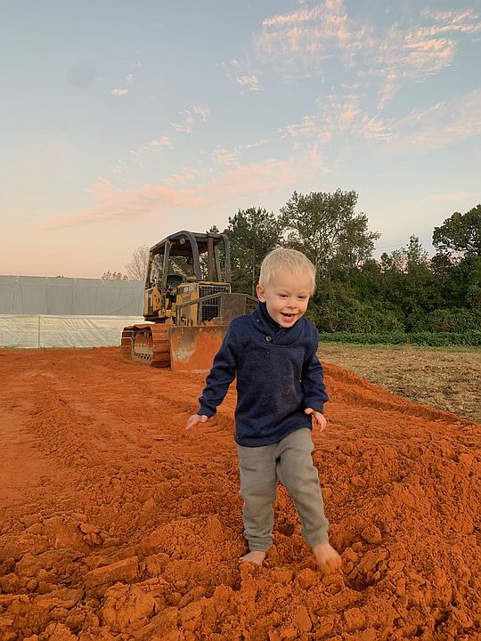 Cooper running around ear Mr. Tuckers bulldozer. Yes, we are having some work done