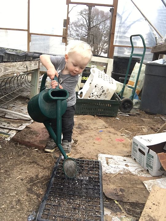 Cooper “helping” water seed tray