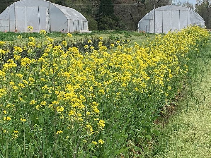 We sometimes leave crops in the field so the bloom in order to attract pollinators. These are turnips left over from fall