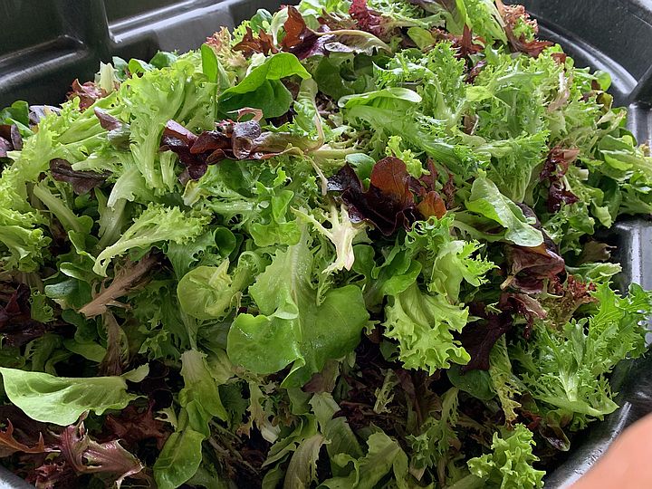 Tub full of red and green lettuce, salanova salad mix