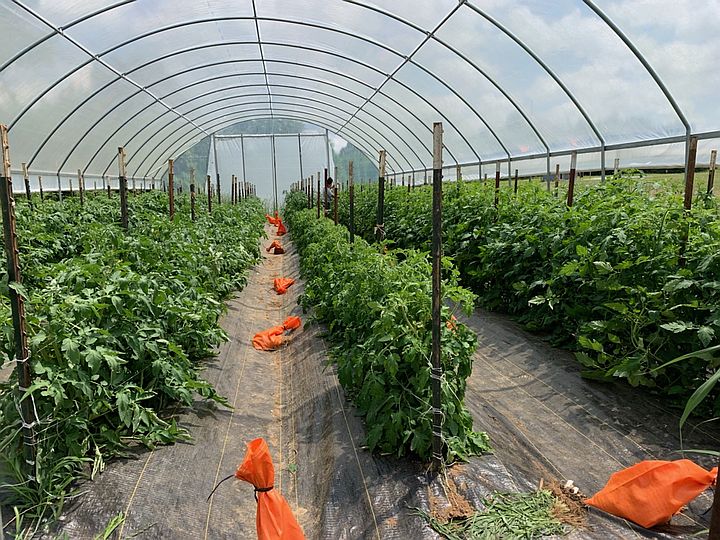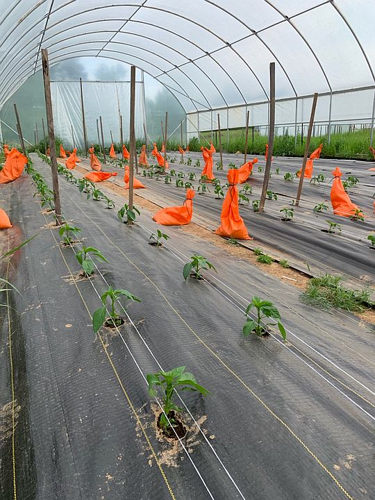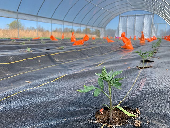 Little tomato plants in the high tunnel