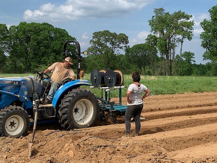 Cooper & Jo planting cover crop seeds