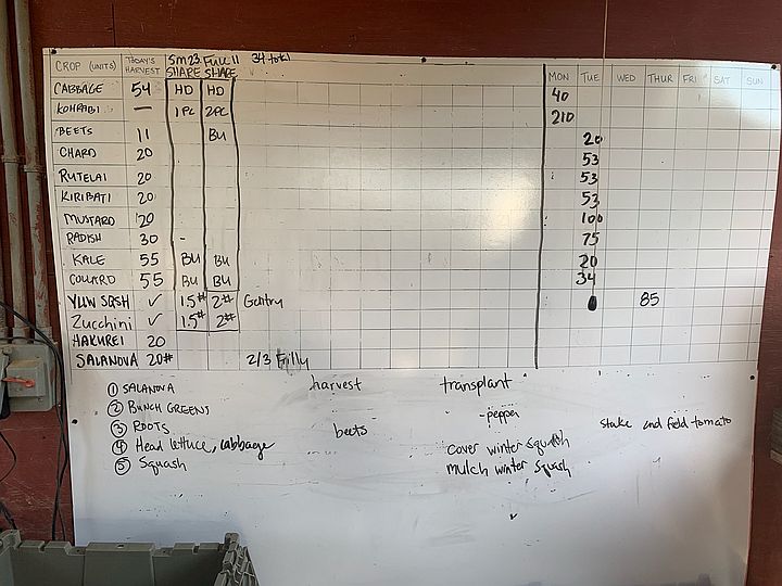 The dry erase board in our packing shed has simplified harvest days