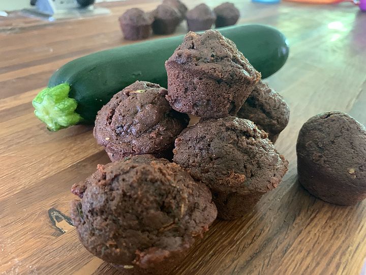 Zucchini mini-mufins muffins front, zucchini back