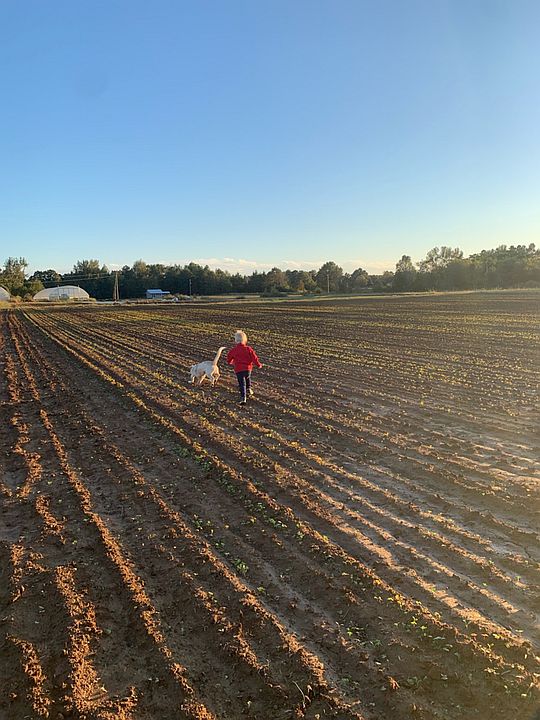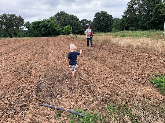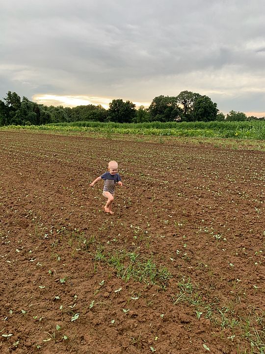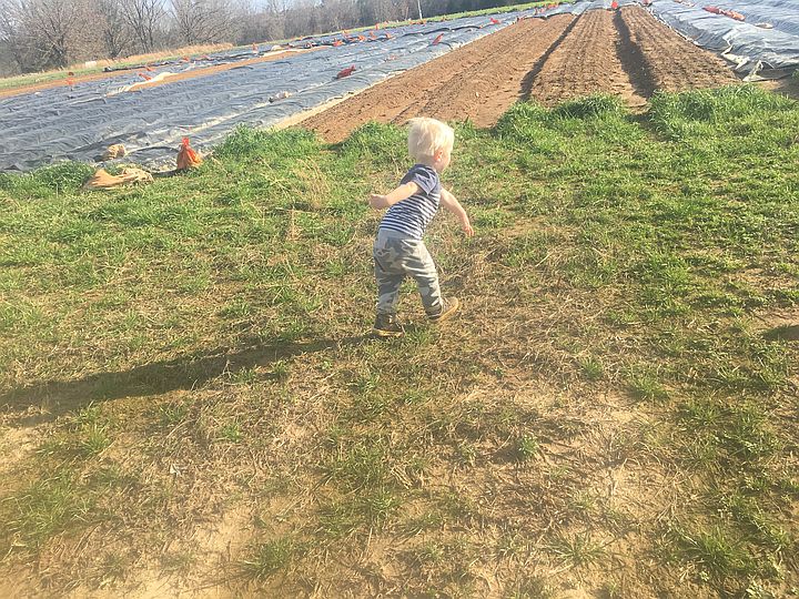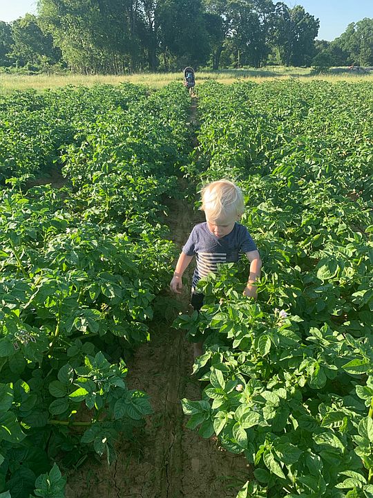 Cooper running through the potatoes