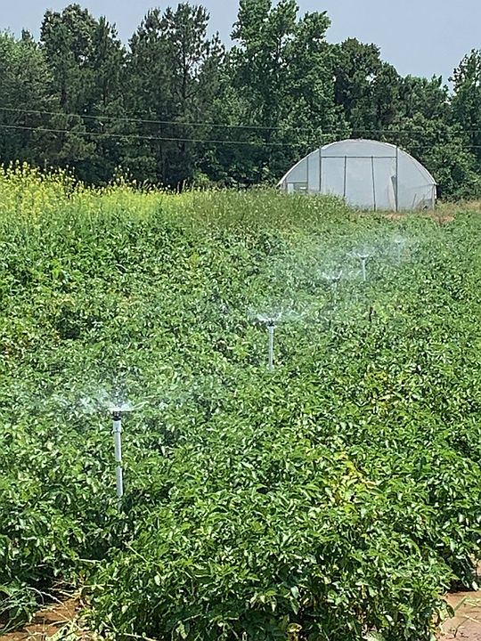 Wobbler sprinklers set up in the potatoes