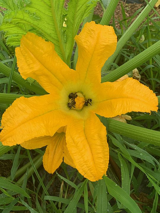 Bumblebees in a squash blossom
