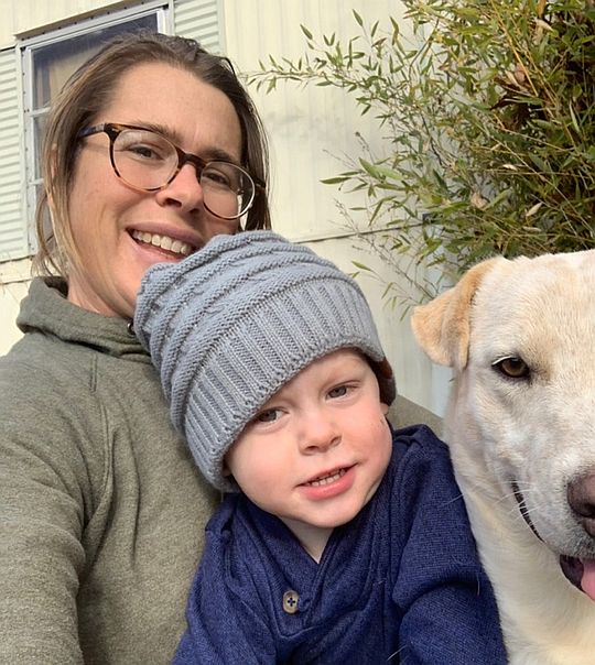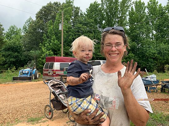 Jo and Cooper a little grimey after seeding cover crop seed