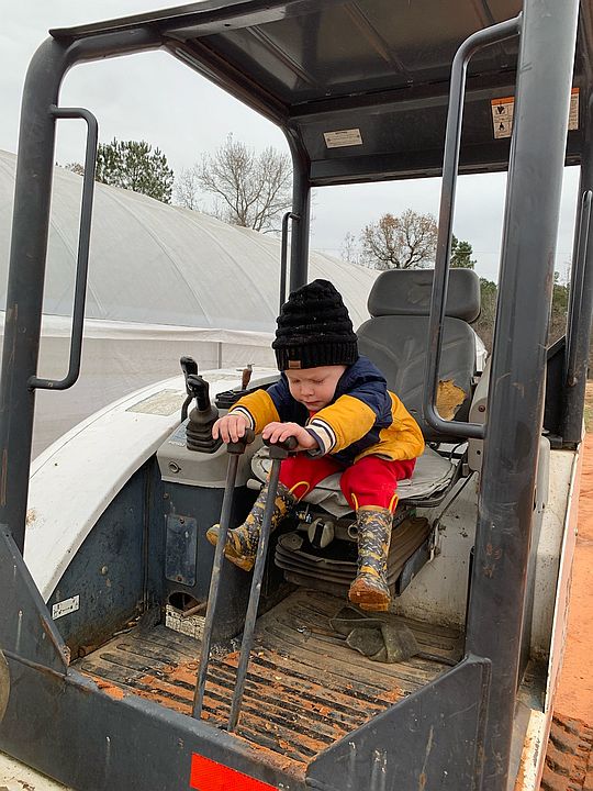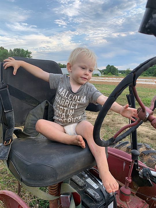 Cooper loves to “drive” the tractors here he is on the old Farmall Cub