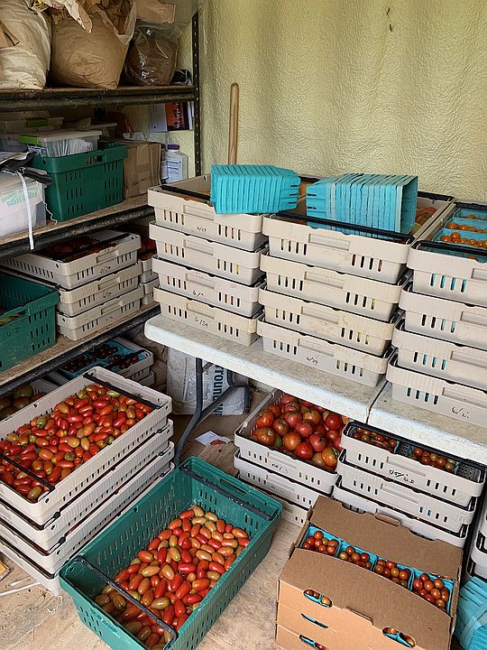 The tomato season has begun. all of those flats are full of cherry, plum, slicer and heirloom tomatoes