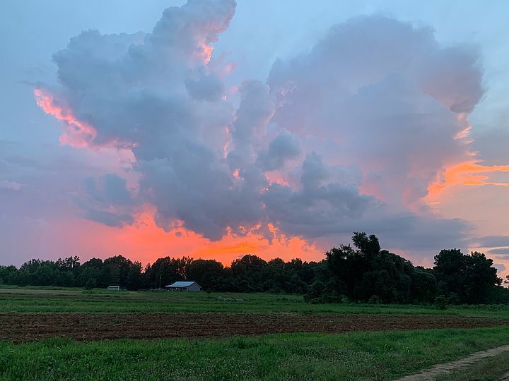 Sunset looking across the field toward our house
