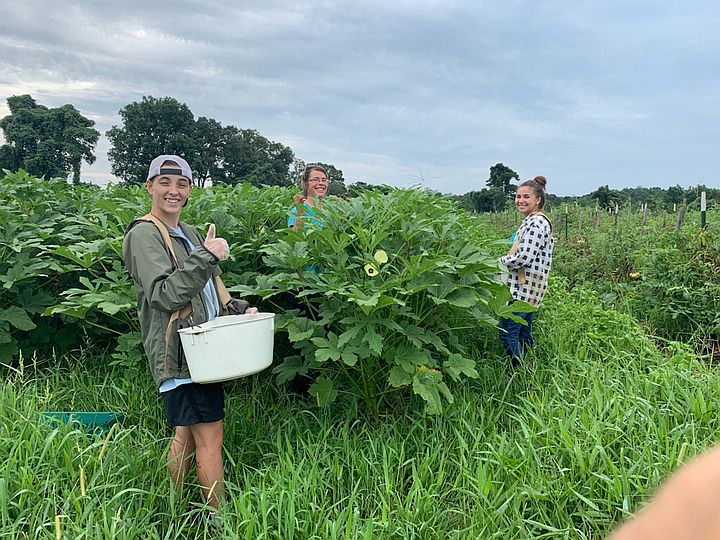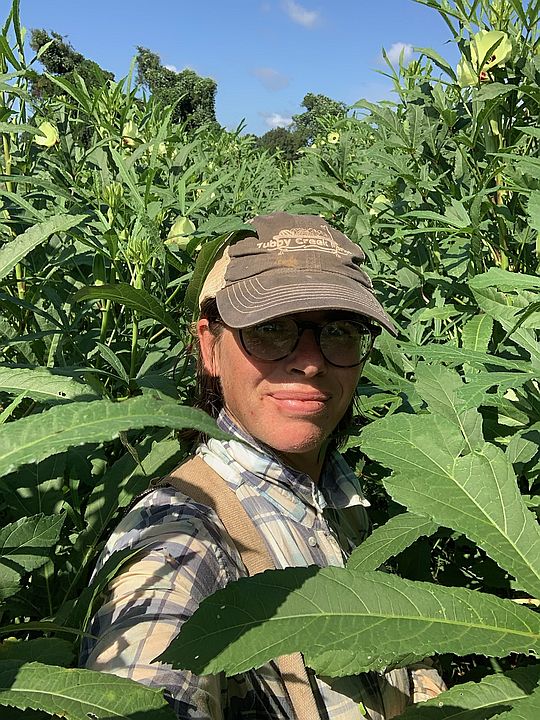 Josephine’s farmer selfie in the okra patch