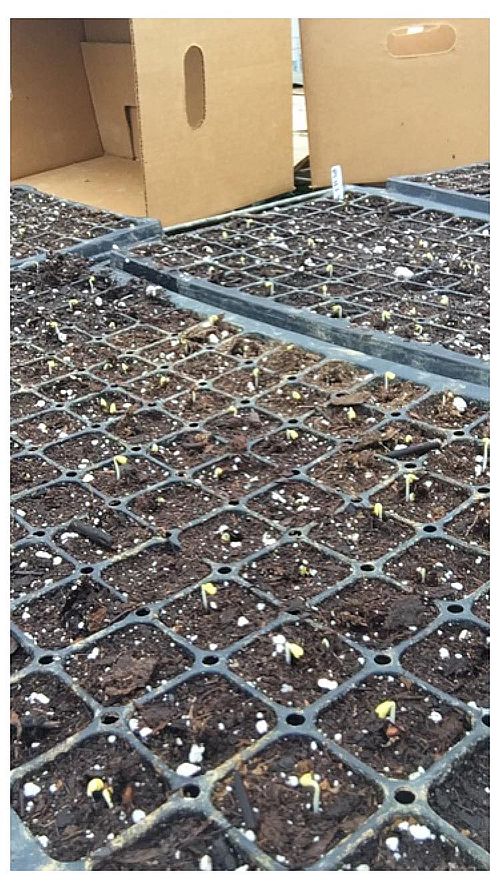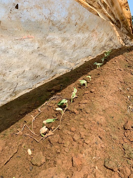 Beans sprouting under a protective layer of Agribond