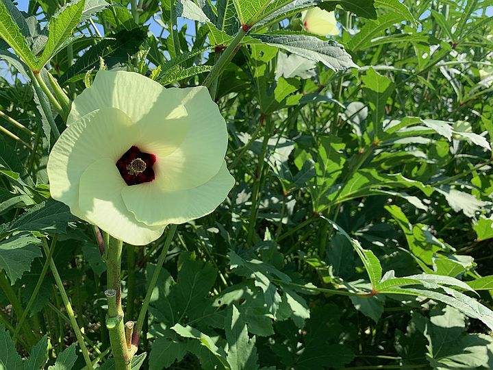 Okra flower up close