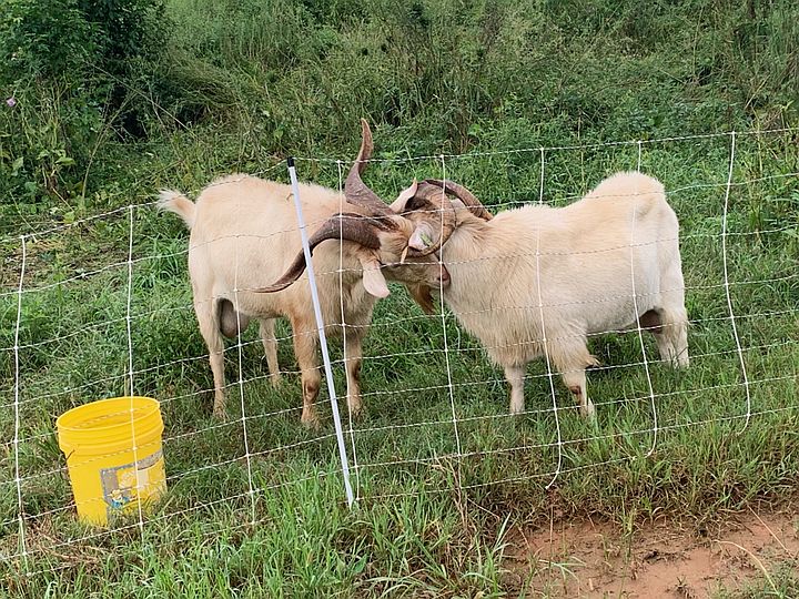 Goats running around