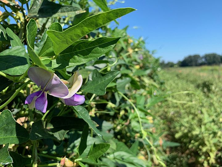 Close up of our long beans flowering