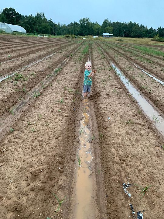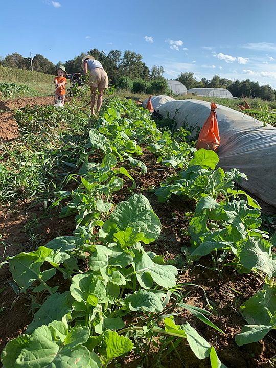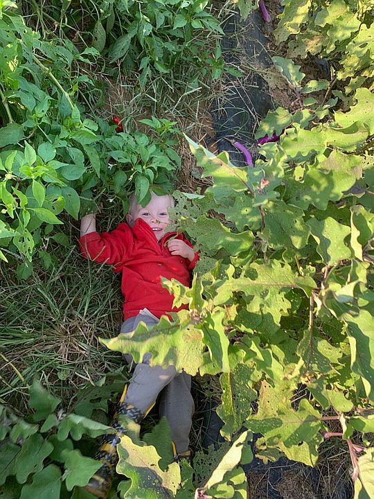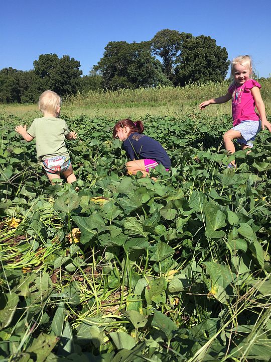 Cooper, Ava and Hanna (l to r) playing in the sweet potato patch