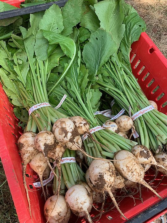 Hakurei turnips,harvested,bunched and waiting to be washed