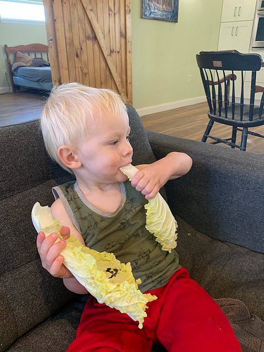 Cooper munching on Napa cabbage