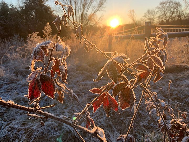 Frosty Morning Scene, frost o some plants at day break