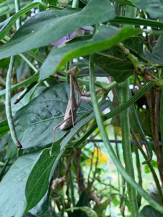 A Pray mantis hanging out in the long beans