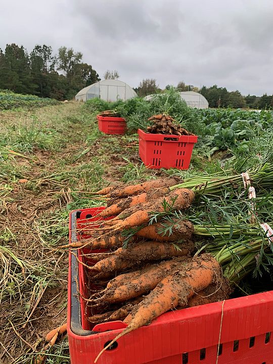 Harvested, carrots in the field ready for washing