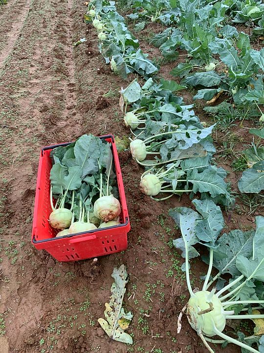 Kohlrabis have sized up nicely, here they are mid harvest