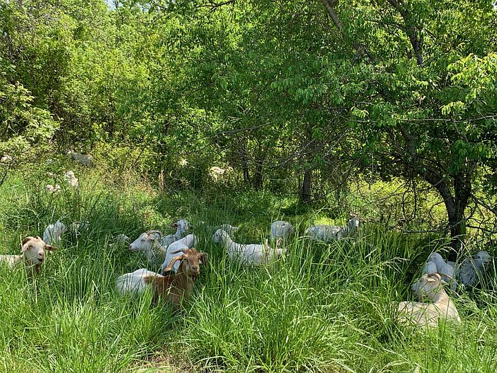 Goats resting after their morning graze