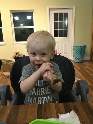 Cooper helping with the chalk board