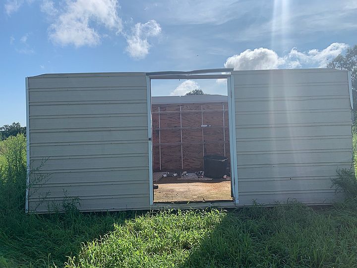 After the storm, this shed is missing its roof